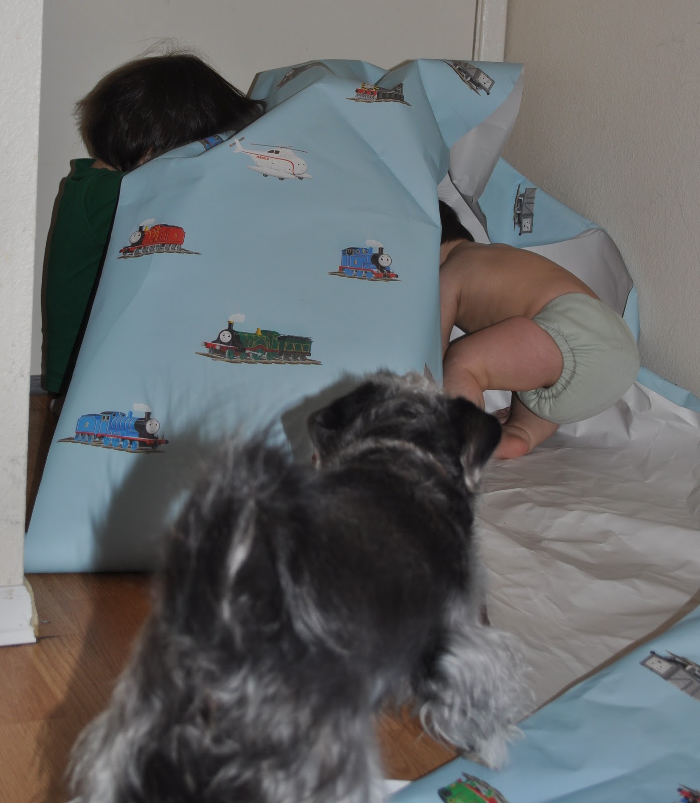 By the time I got back they were both done and wanted down. I had to go pee so I left them in the living room for about a minute. This is what I came back to.........